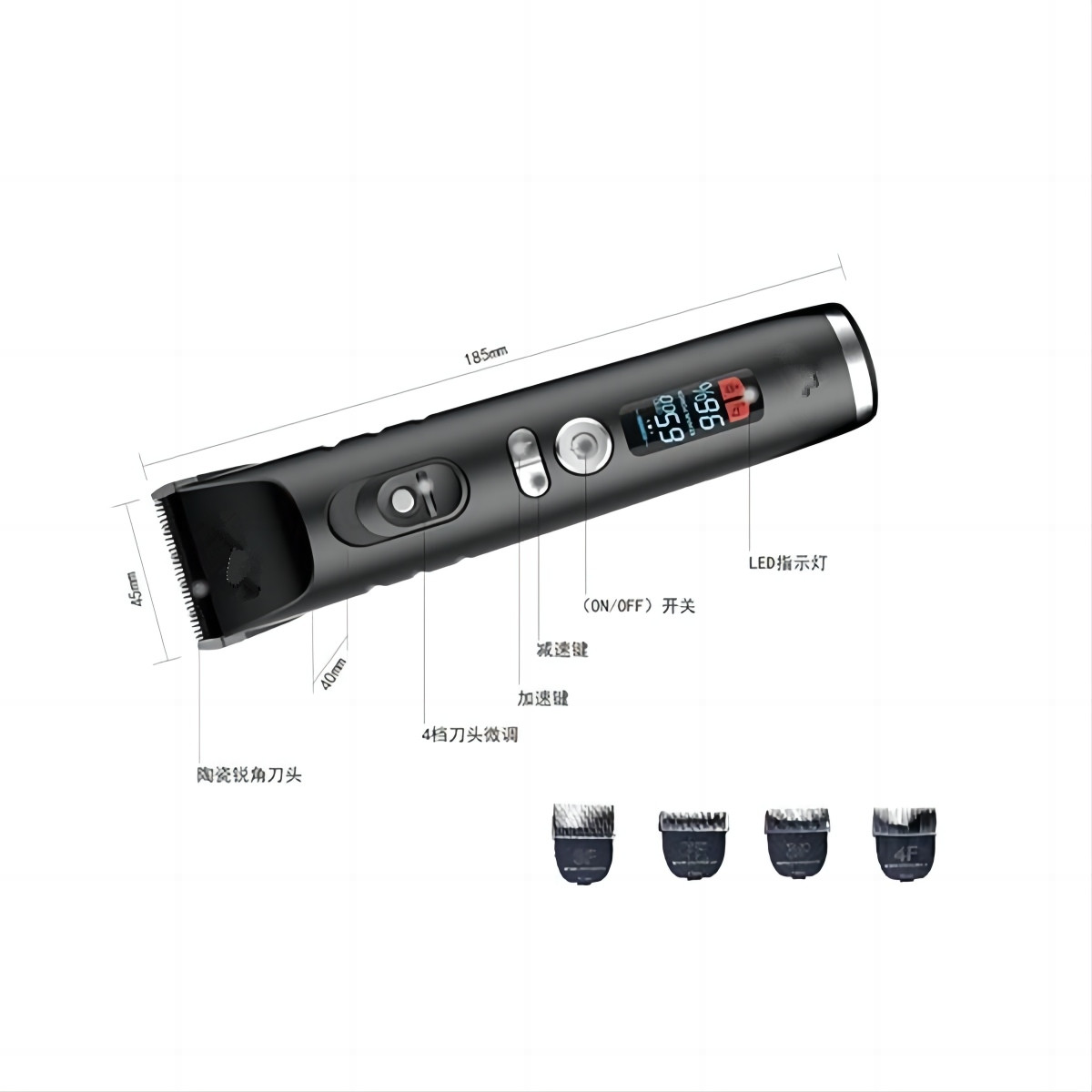 • Der hochauflösende LED-Bildschirm zeigt den Batteriestand in Echtzeit an, verhindert Stromunterbrechungen während der Fellpflege und sorgt für eine reibungslosere Pflege zu Hause oder im Friseursalon.